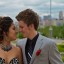 This is a picture of my daughter and her date for her high school prom. The picture was taken on the steps of Union Terminal in Cincinnati. The black and white colors of their clothes contrasted against the background colors are so cool.