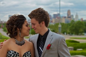 This is a picture of my daughter and her date for her high school prom. The picture was taken on the steps of Union Terminal in Cincinnati. The black and white colors of their clothes contrasted against the background colors are so cool.