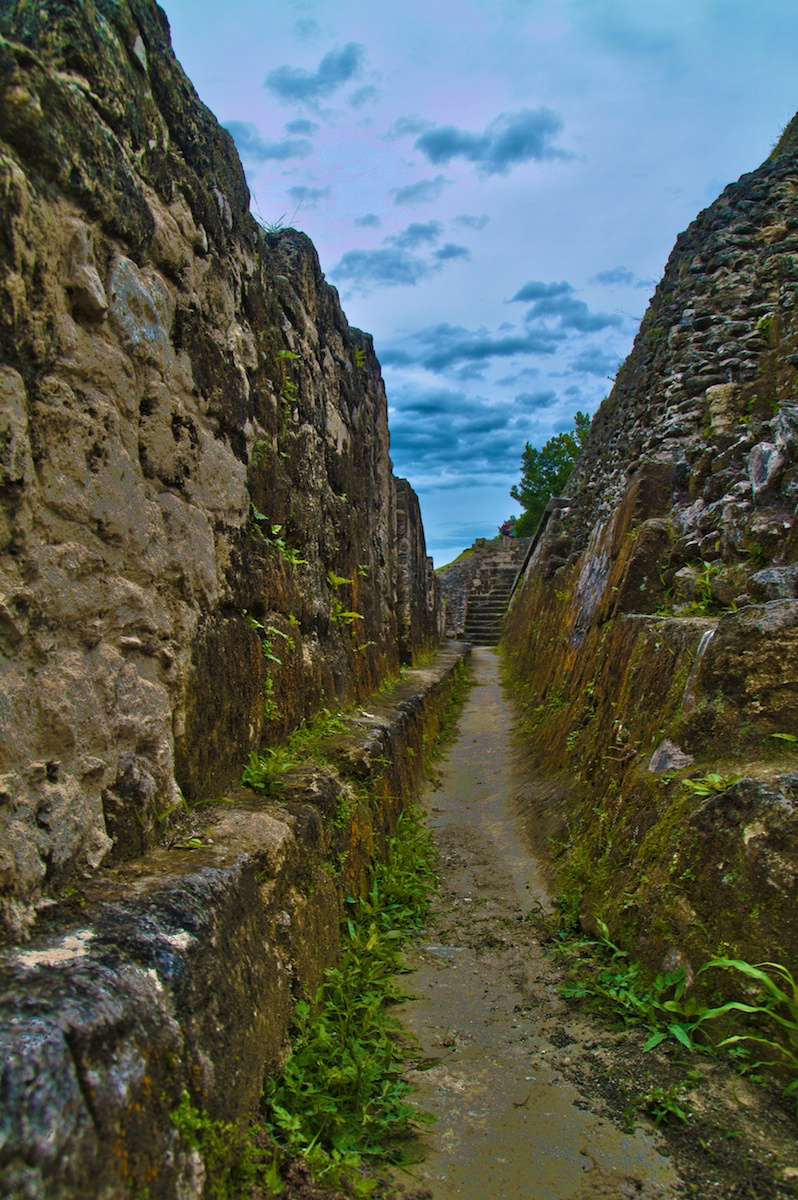 Here is an HDR photo of the Xunantunich ruins in Belize. This is one of the pathways midway up the face of the largest ruin.