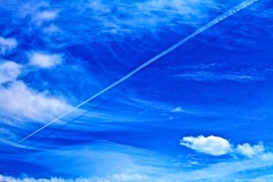 Here is an photo of a jet contrail (Chemtrail) in the sky. I thought it was interesting that it appears to have a shadow just below. Hmmmn.