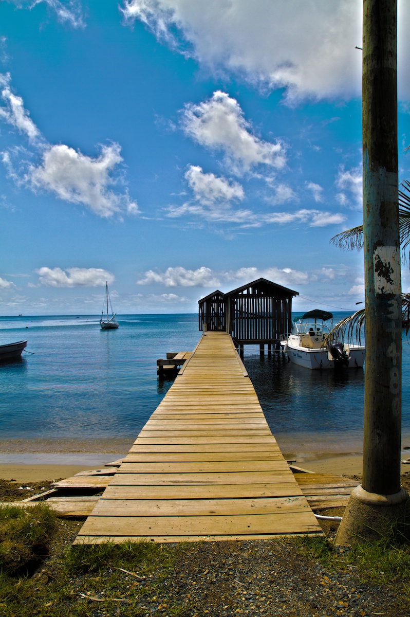 This is a photo of a doc in Roatan Honduras. The weather was perfect and the sky was fantastic.